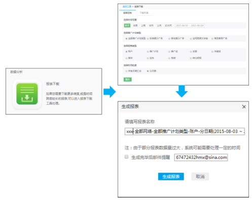 ★ 分维度的定制报表:根据所需维度指定下载报表,单独进行后续行为的分析。