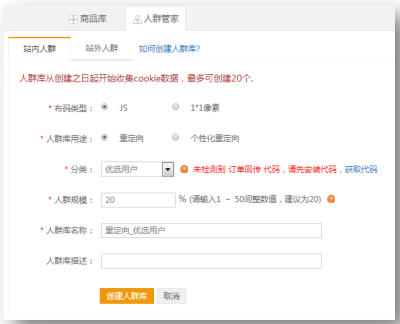 ★ 站内人群是第一方数据,访问过广告主网站的人群。通过添加流量统计代码收集