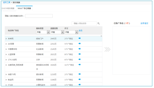 ★ 媒体锦囊分为:分 AD EXCHANGE 域名锦囊和 MAX 广告位锦囊