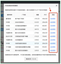 b) 开启后,系统即时对该广告主开启“实时预览定向”模式。同时,根据广告主指定的创意,系统会自动匹配当前推广组所选择的媒体尺寸,挑选出符合要求、且流量最大的 Top10 个广告位链接,供广告主点击预览。