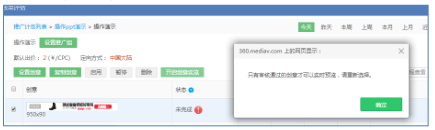 ★ 仅审核通过的360广告创意可以被预览,选择的360广告创意中,一旦有 1 个审核不通过,则无法开启预览模式(如下图):