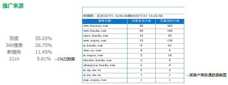 ◆百度流量毋庸置疑,但是竞争程度及成本投入较好搜相比要高很多,如客户属于中小品牌,预算有限,则建议客户优先选择性价比更高的好搜搜索!