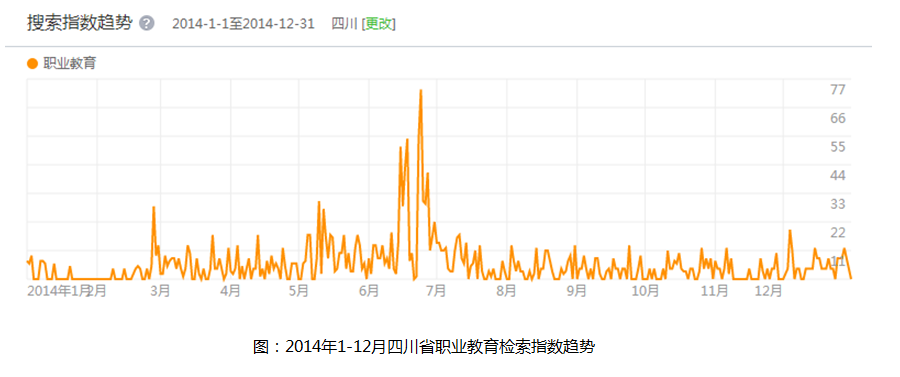 虽然各子行业的淡旺季差异较大,但是从总体来说,每年6-7月是职业教育的搜索高峰期,3月、5月也会有一个小高峰。