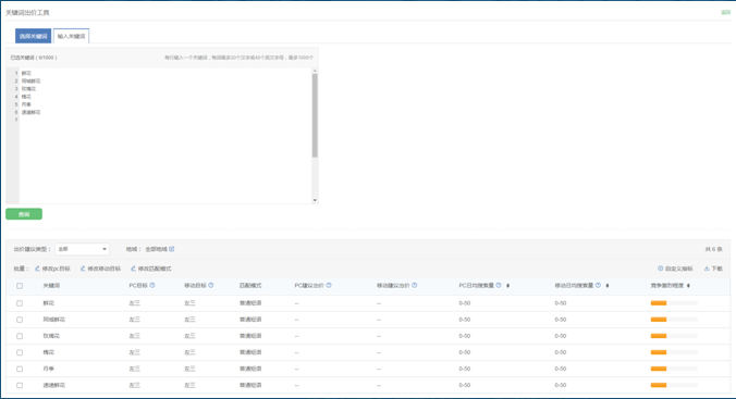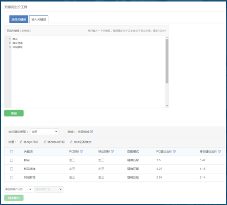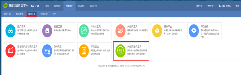 功能入口:360搜索推广—实用工具—关键词出价工具