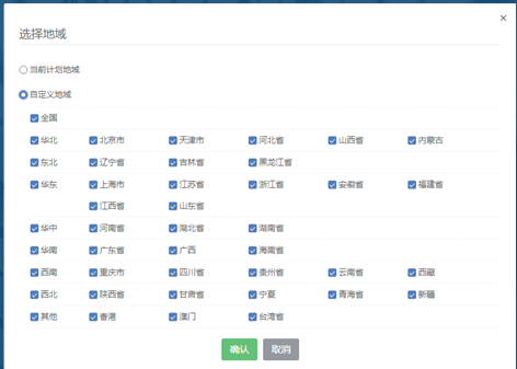 筛选条件:设备(全部设备、PC、移动)、地域(当前计划地域、自定义地域);