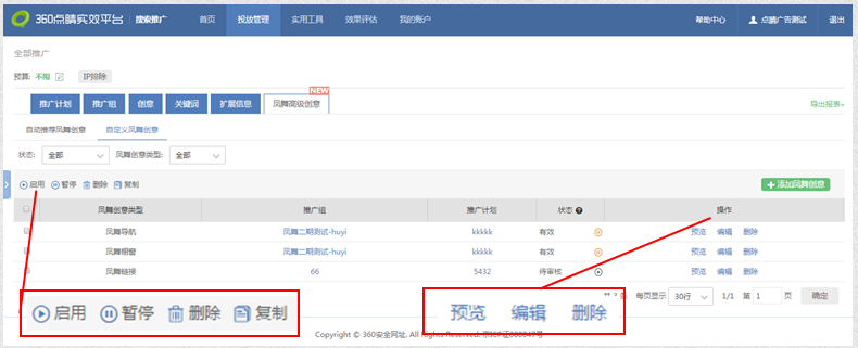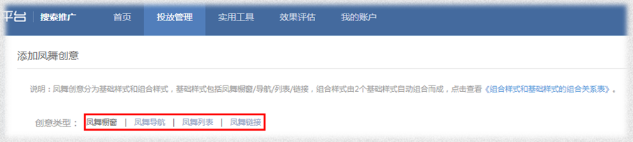 当前可选择凤舞样式为:360凤舞橱窗推广、360凤舞导航推广、360凤舞列表推广、360凤舞链接推广四种基础样式