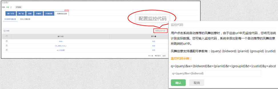 监控代码是指帮助广告主做广告效果和来源监控的代码,监控代码会添加在链接URL(落地页URL)中,广告主可自定义