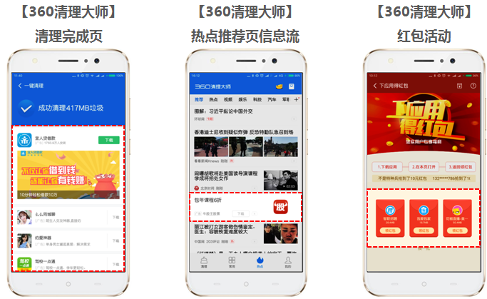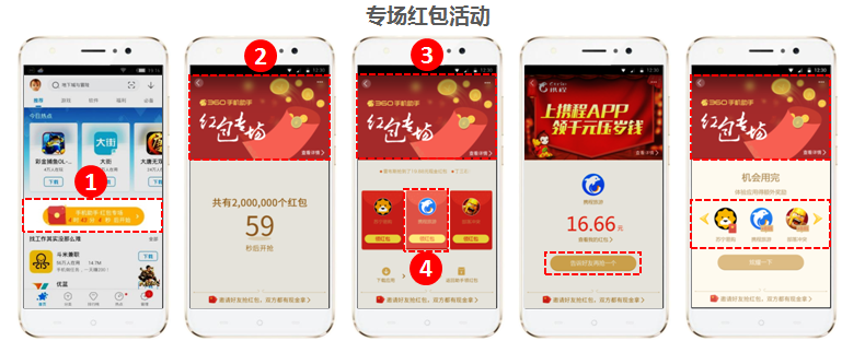 红包活动——滚动展现,除首页3个应用中间位置可按CPT资源售卖以外,其他位置均为CPD
