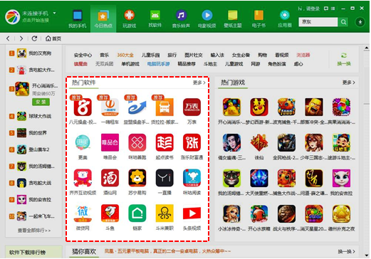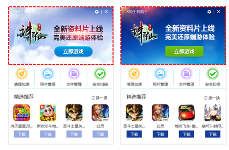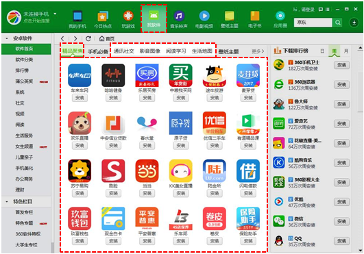 【360手机助手】PC端,热门软件模块,共有20个APP广告位