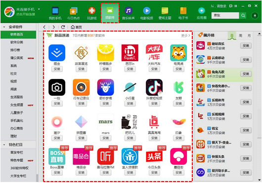 【360手机助手】PC端,找软件-新品速递模块下有APP广告位