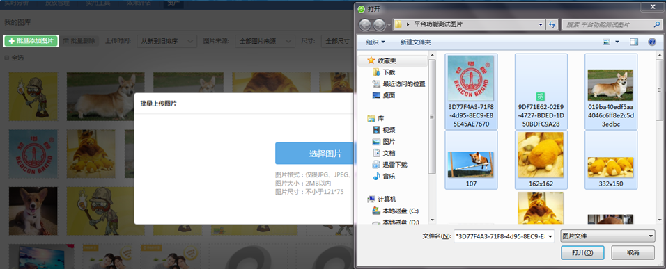 批量添加图片步骤:批量添加图片-选择图片-打开(本地图片)