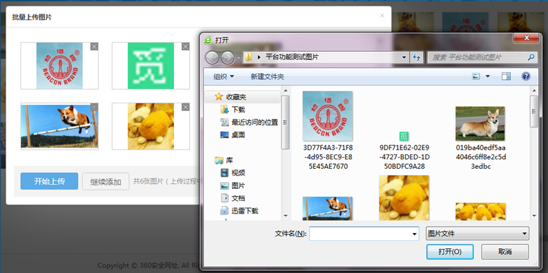 批量添加图片步骤:选择图片后,可“开始上传”,或者“继续添加”