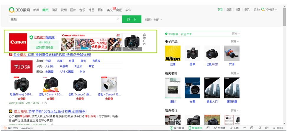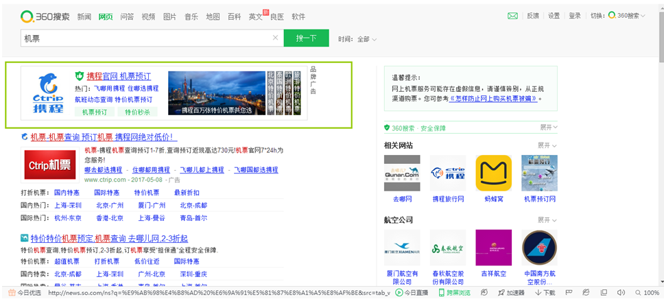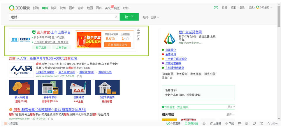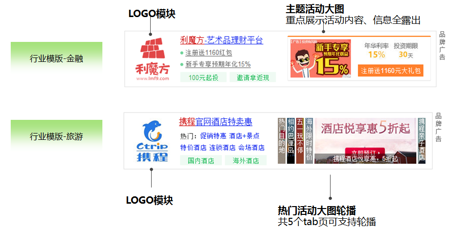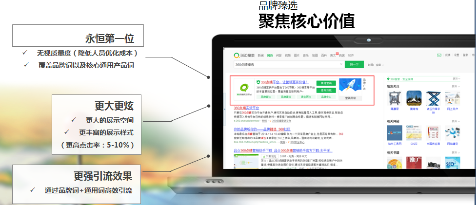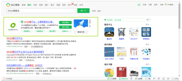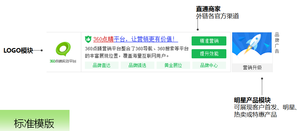 2、客户未购买品牌直达时 | 360搜索结果页首条、CPC竞价广告上方 | 不需拆分词包; 选择有logo模板(标准样式或活动样式 2选1) |