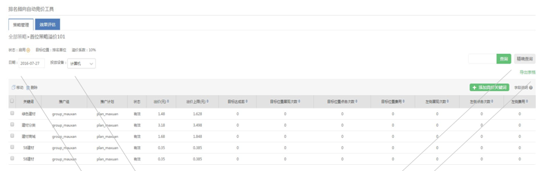 添加竞价关键词:往策略中添加关键词
