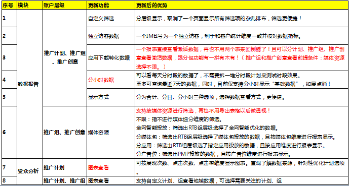此次报表升级(一期),此次升级主要涉及数据报告和受众分析,主要亮点