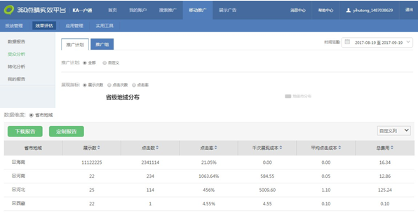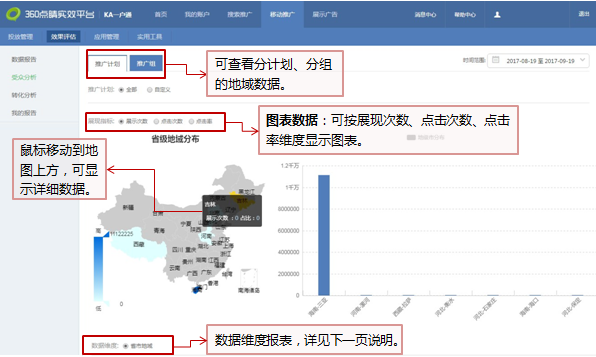 通过受众分析,了解推广计划、推广组的地域分布数据。