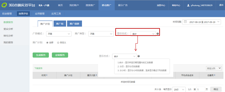 ①分小时数据:至多可查询近7天的数据,同时,目前仅支持分小时显示“基础数据”,如展点消。