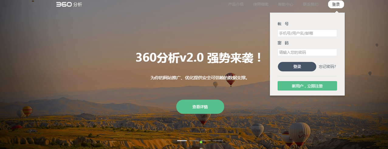 360分析工具已开放注册,注册网址:fenxi.businessdata.360.cn,360点睛已有客户无需注册,直接登陆即可使用