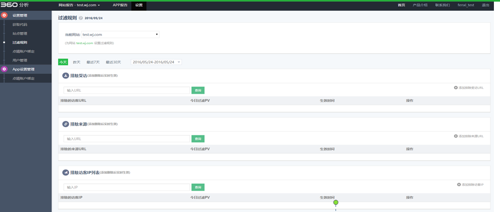 排除IP:把特定IP的访问数据过滤掉,不计统计结果