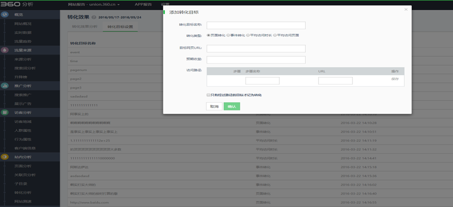 转化目标包括4种类型,分别是页面转化、事件转化、访问时长和访问页数设置