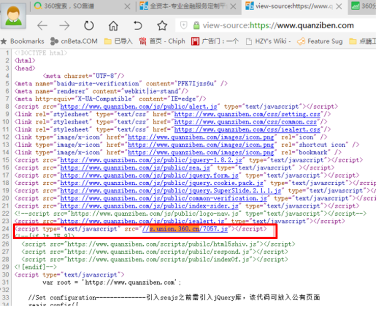 在源代码中查找(快捷键一般是 ctrl+F) ”s.union.360.cn” ,