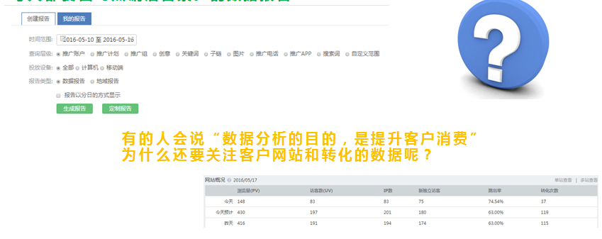 有了网站部分数据信息,即可与360搜索推广数据相结合并将数据打通,为后期有效的优化动作打下良好基础!完整的数据,是SEM优化工作的基石,对于效果的提升必将事半功倍!