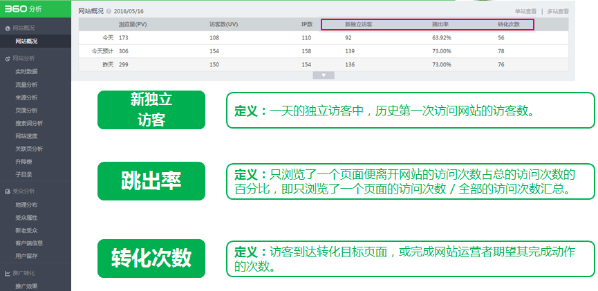 由于网站数据需要通过360分析等网站统计软件才能获得,故第一步应先建议客户安装统计软件