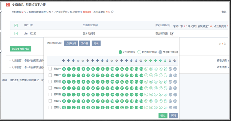 分计划优化:筛选出20个重点计划,进行优化建议推荐