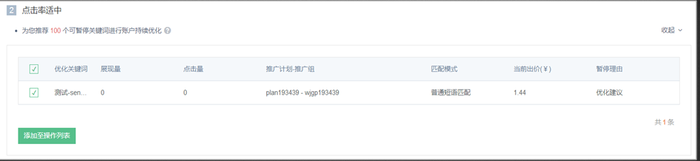 Q:分析的账户优化建议勾选后会自动同步到点睛平台吗?