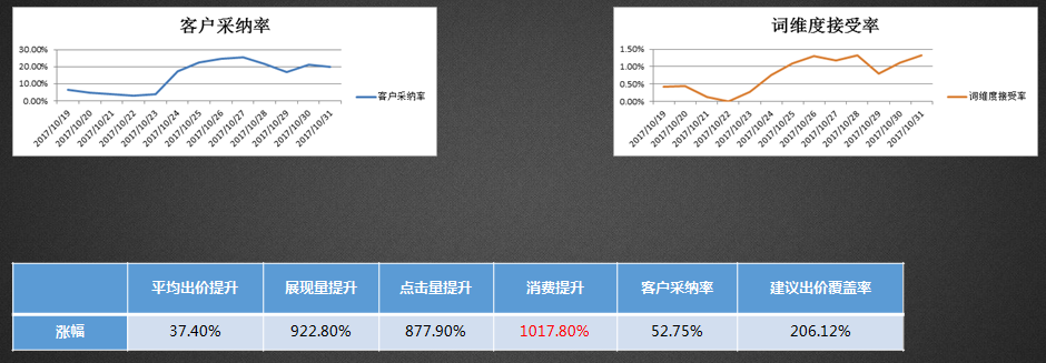 采纳数据进行对比,客户采纳率提升413.05%;关键词采纳率提升348.07%。