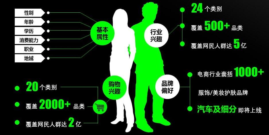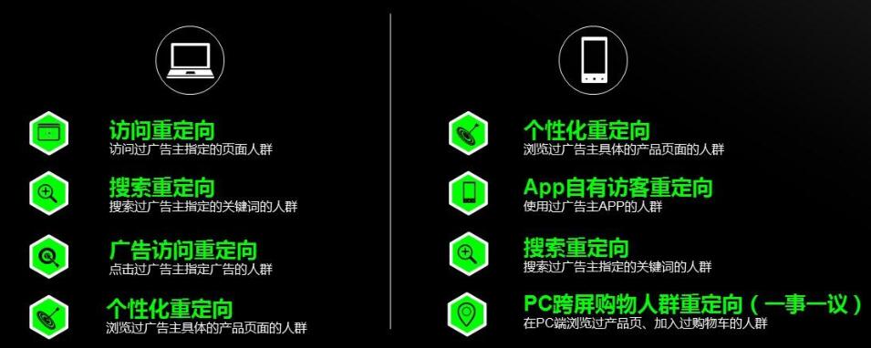 行为链大数据领先精准定向,新客获取&老客召回,80万标签总量|8大重定向模式,广告投放更加精准。