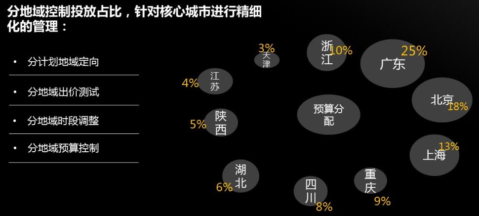 | 潜在用户人群 | 品牌曝光,控制转化成本 | 选择年龄 19-24 25-35 | PC:预算重点在上午及中午时段; 移动:确保晚间广告覆盖 | 分城市建立计划;预算控制;出价控制等。 | 分时段出价策略 |