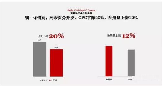 列表页详情页进行分版位差异化出价投放,降低整体投放成本。分开投较合并投CPC下降20%,注册量上涨12%。