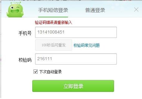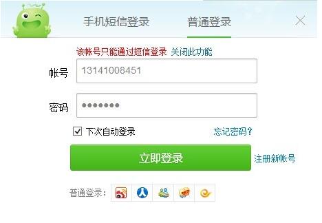 注:当账户绑定手机并开启“短信登录”功能时,该账户只能通过短信验证的形式登录。