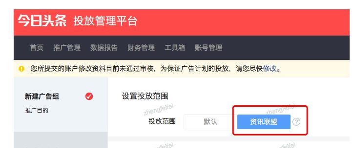 4、创建广告计划,添加投放链接(投放位置选择资讯联盟)