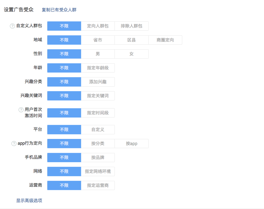 2、设置广告受众