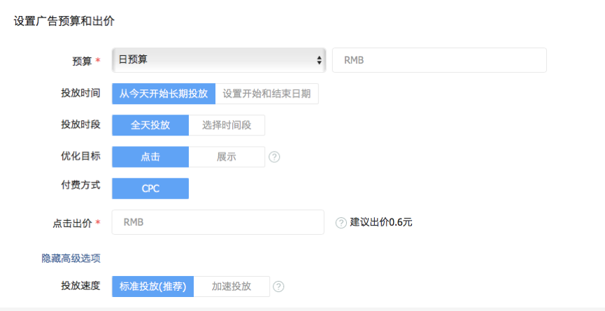 3、设置广告预算和出价