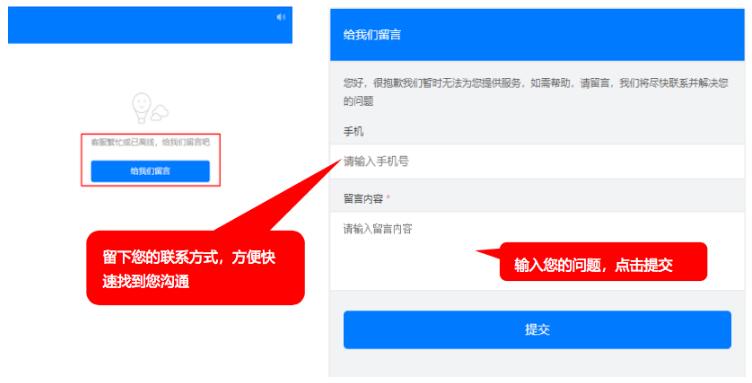 PS:若当前增值人员未在线,可将问题用留言的方式发送,我们会在 1 个工作日内进行回复。