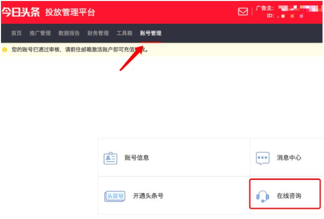 1鼠标点击“账号管理”—2 点击“在线咨询”—3 进入聊天窗口&问题留言