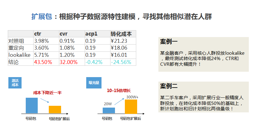 通过扩展获新功能,精准获取与种子包特征类似的潜力用户,并可自定义人扩展量级。