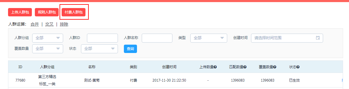 付费人群包可交集、排除上传、规则人群包(不可上传、规则包排付费包)