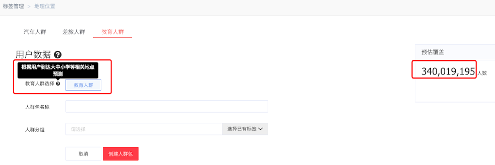 入口:AD后台工具箱-头条DMP-标签管理-地理位置-汽车人群/差旅人群/教育人群