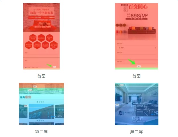 看一下广告主本身落地页的首屏触达线,仅仅有50%!这个落地页到底踩了什么雷?