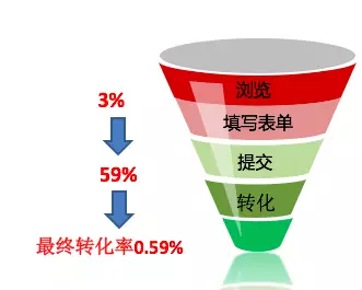 接下来看一下转化漏斗,从浏览到提交表单的转化,原落地页从浏览到填写的转化率仅仅有3%,而优化后的转化均保持在10%以上,分别为13%,14%,13%。