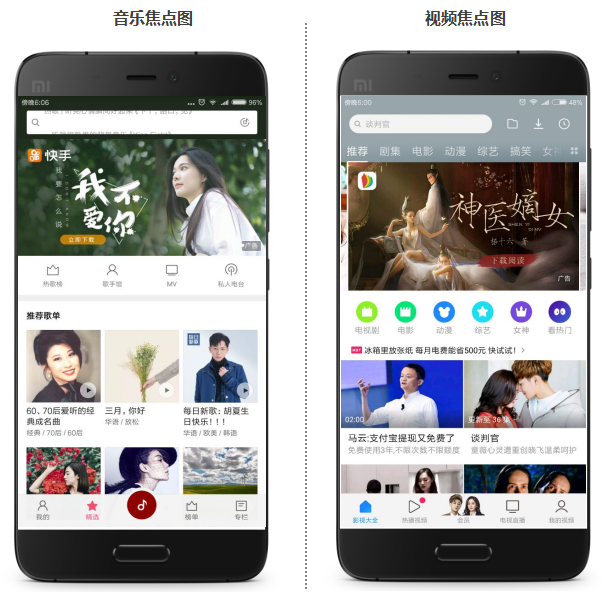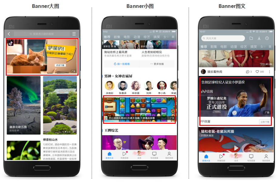 Banner广告展示媒体:小米视频、小米音乐、个性主题、小米画报