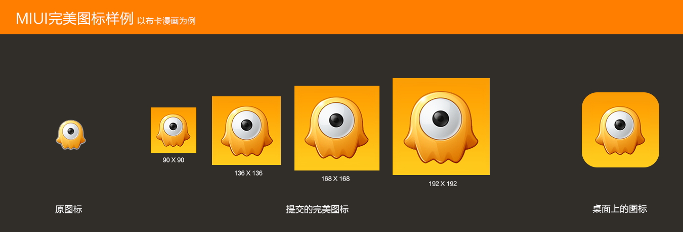 • 完美图标是什么?具体用途?是否有设计规范说明?如何上传?MIUI图标都是扁平化设计,用最简单的语言来归纳ICON。所以希望第三方APP的设计者也遵循这一设计要求。完美图标是系统使用统一的模板将应用图标进行裁切,来保证图标形状的整齐统一,开发者只需上传未裁切的矩形图标即可在MIUI桌面上显示出符合系统规范的图标。