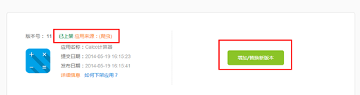 如果线上的包为爬虫抓取的,并且已经通过了审核,请直接点击“增加/替换新版本”,上传您要替换的同版本(version code)的包,完善资料提交即可。