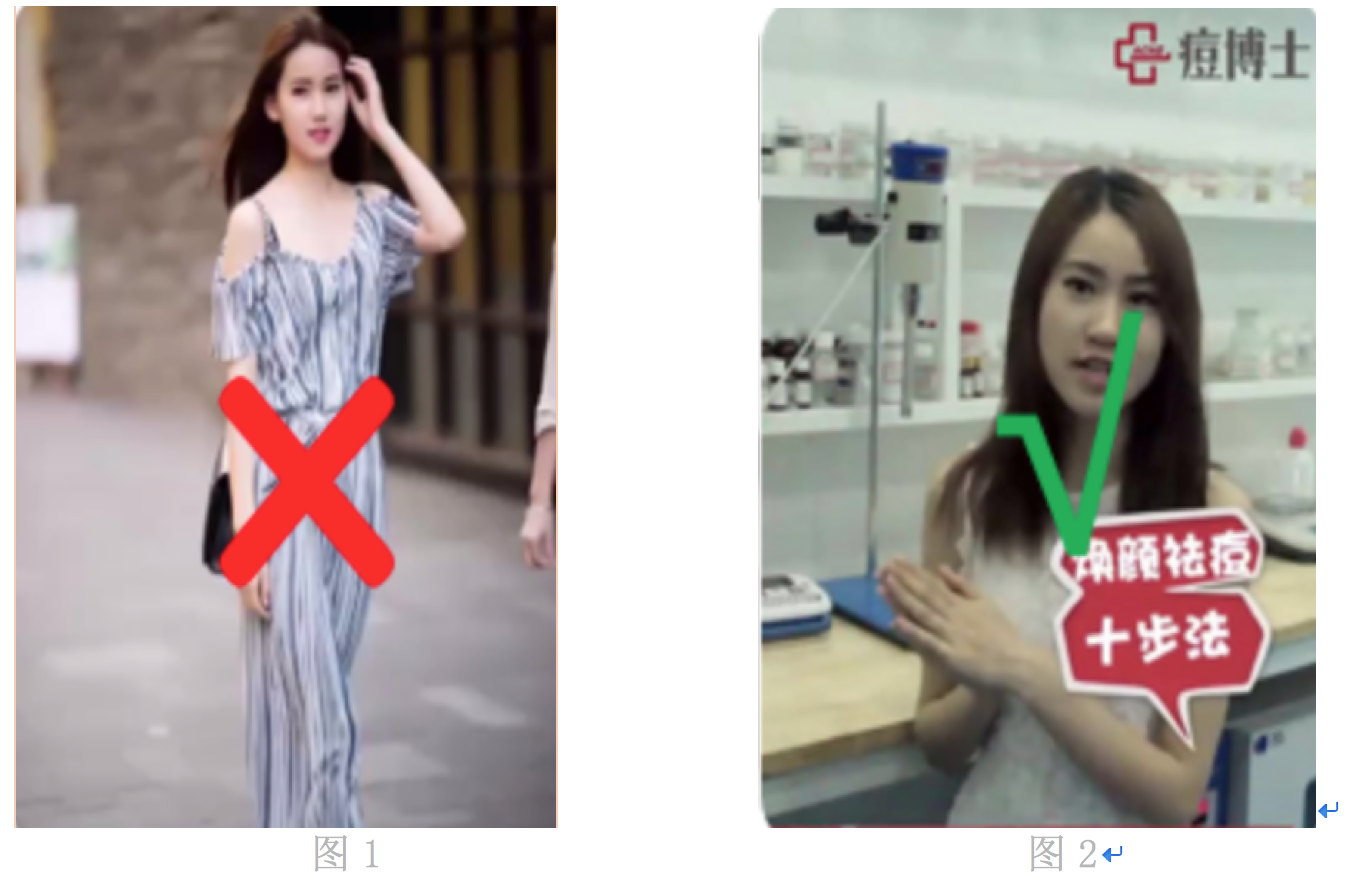 - 上图1、图2均为痘博士的素材,其中图1的相关性低,并未突出痘博士的主要功能以及能给客户带来的直接价值,且封面为美女素材,容易误导用户;图2则是实拍素材,且在首帧突出痘博士标识,内容中直观的告知客户痘博士的功效和参加方式;