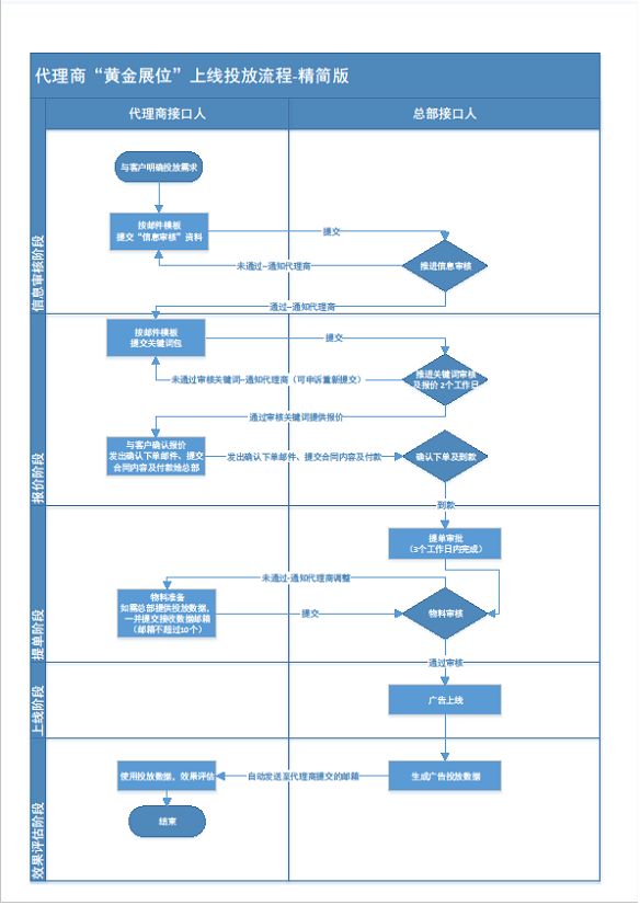 广告主为新客户(之前从未投放过品牌广告的客户),按要求发送“信息审核”邮件给到总部接口。老客户如果网站URL 变更,也需按此流程进行申请。