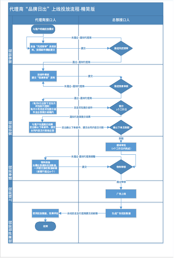 因总部订单审批节点较多,提单申请邮件至少在广告上线前五个工作日发出。